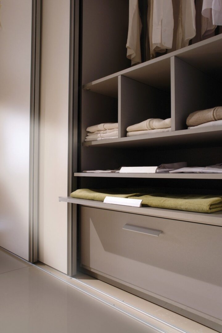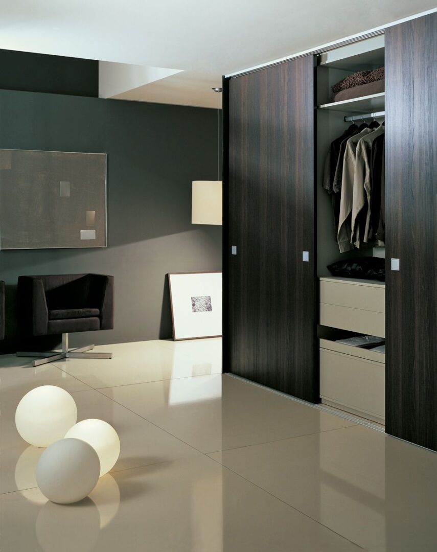 La variedad de materiales como la melamina, espejo y vidrio de seguridad se suman a las diferentes terminaciones de perfiles para dar respuesta a las más variadas exigencias de diseño.